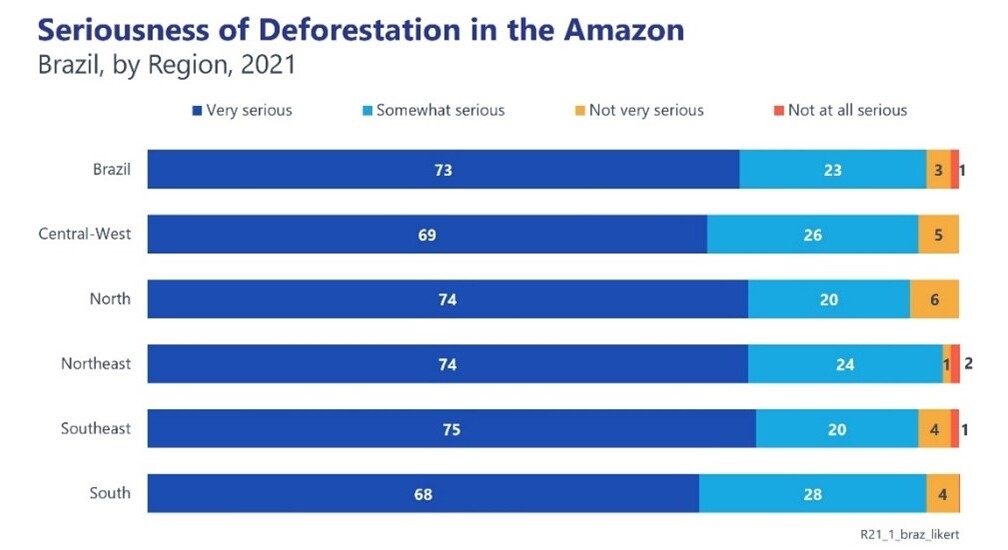 People in all regions of Brazil – home of much of the Amazon rainforest – express high levels of concern about its deforestation.